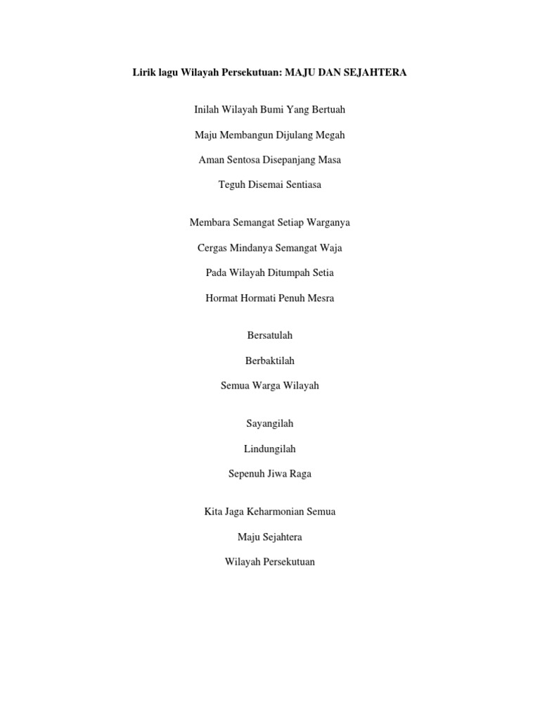 Lirik Lagu Wilayah Persekutuan 1 Pdf Pdf